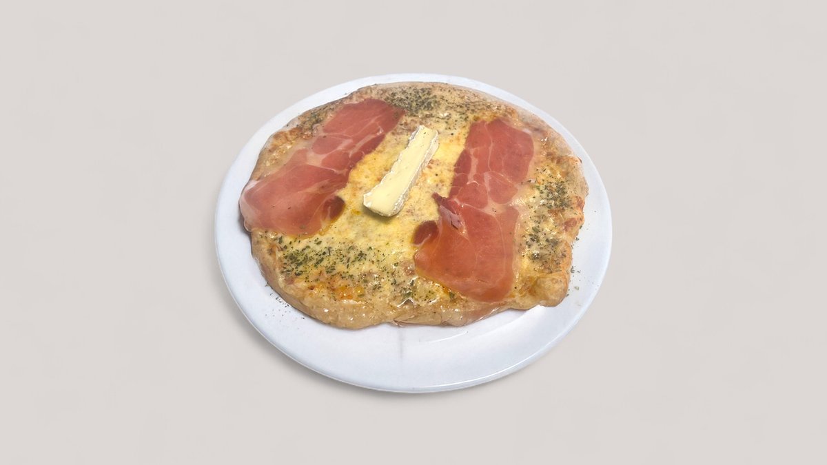 Tomatsås, ost, Prosciutto crudo och camembertost.