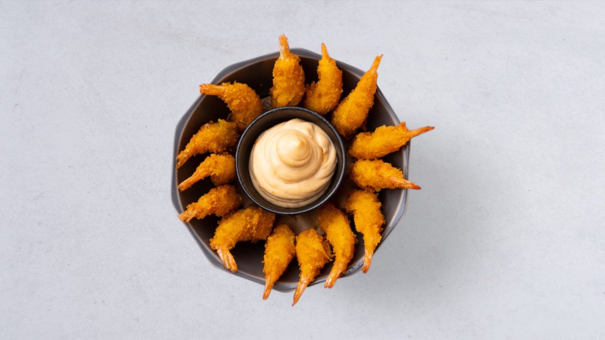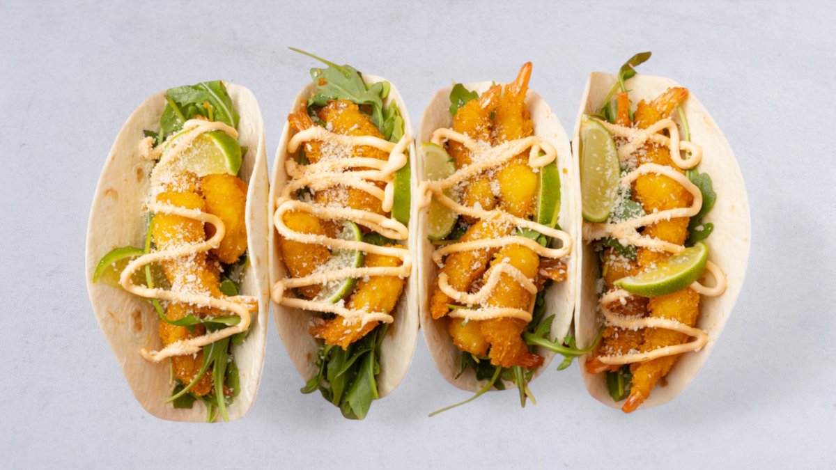 4 st vete tortillas fyllda med friterade räkor, lime, ruccola, parmesan och srirachamajonnäs.