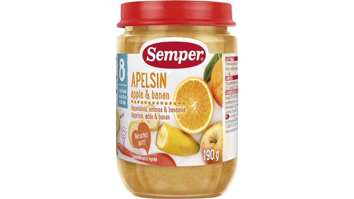 Barnmat Äelsin Äpple & Banan 8 Mån 190g - Semper