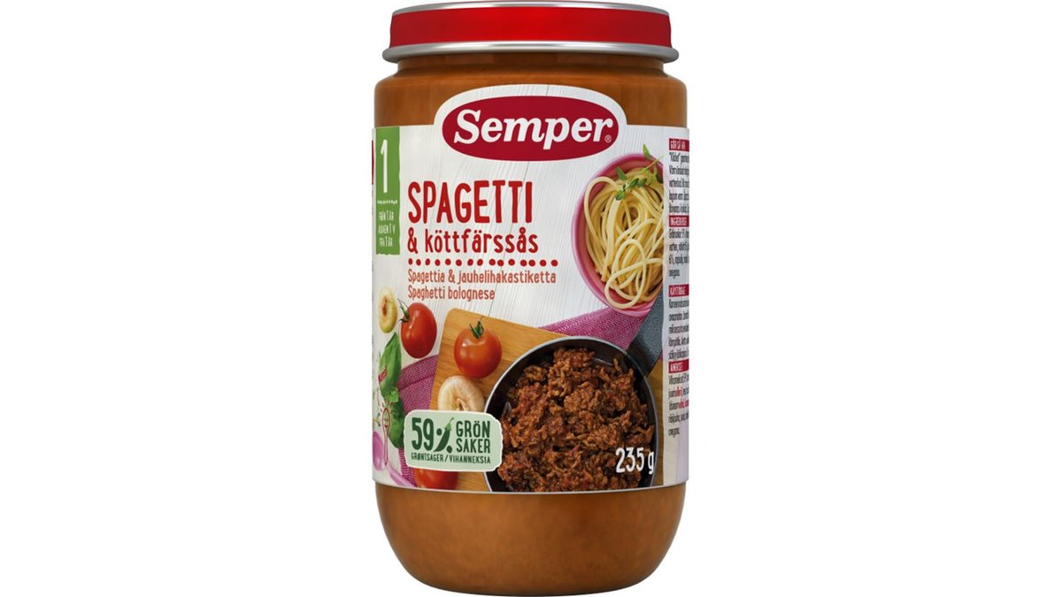 Barnmat Spaghetti & Köttfärssås 1År 235g - Semper
