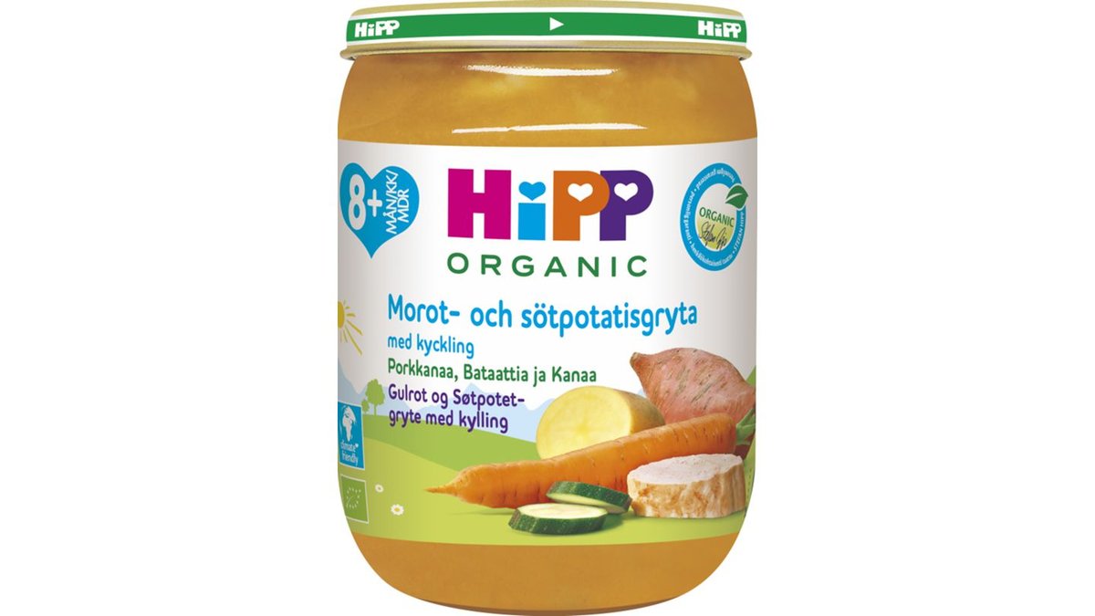 Barnmat Morot, Sötpotatis & Kyckling 8 Mån Eko 190g - Hipp