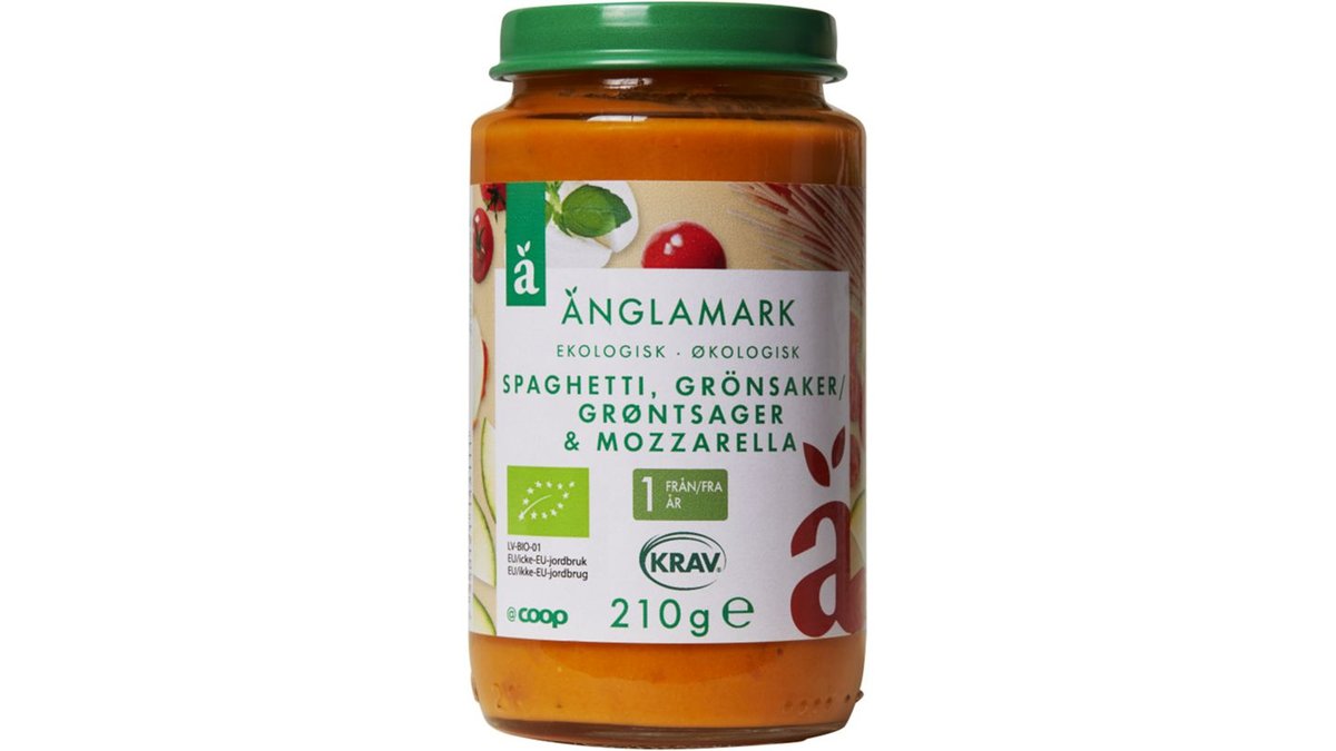 Barnmat Spaghetti Grönsaker & Mozarella 1 År 210g - Coop Änglamark
