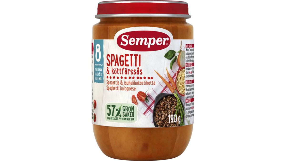 Barnmat Spagetti Köttfärssås 8 Mån 190g - Semper