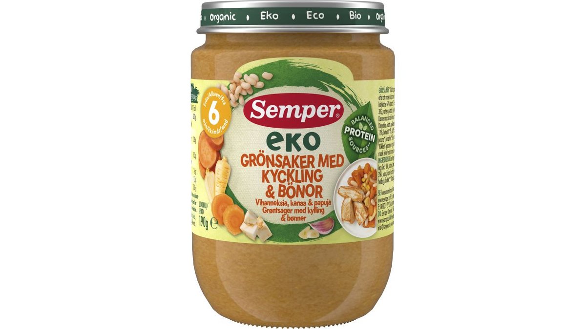 Barnmat Grönsaker, Kyckling & Bönor 6 Mån Eko 190g - Semper