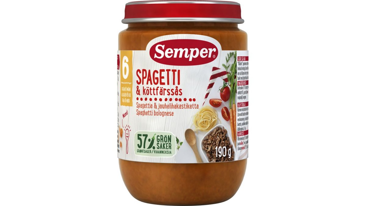 Barnmat Spagetti & Köttfärssås 6 Mån 190g - Semper