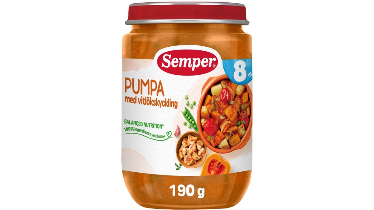 Barnmat Pumpa Vitlökskyckling 8Mån 190g - Semper