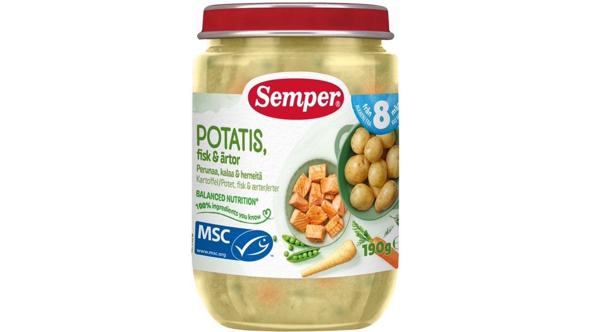 Barnmat Potatis Fisk & Ärtor 8Mån 190g - Semper