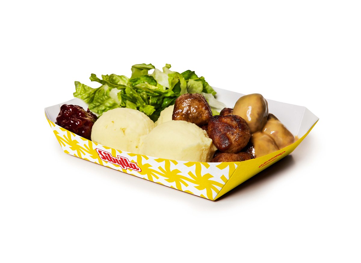 4 st köttbullar, mos, lingonsylt och valfri dryck ingår.