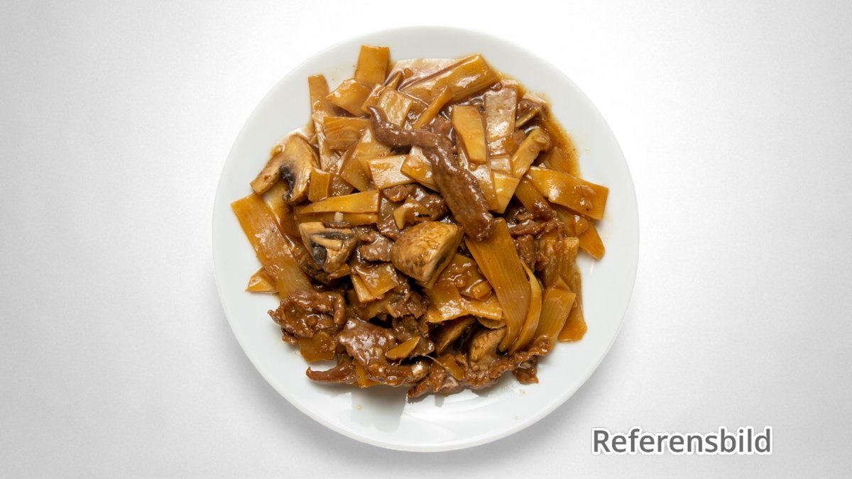 Biff med champinjoner och bambuskott.