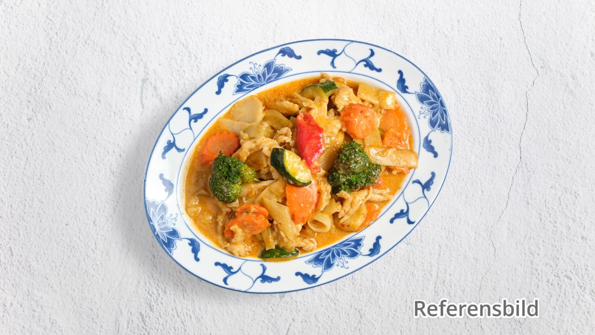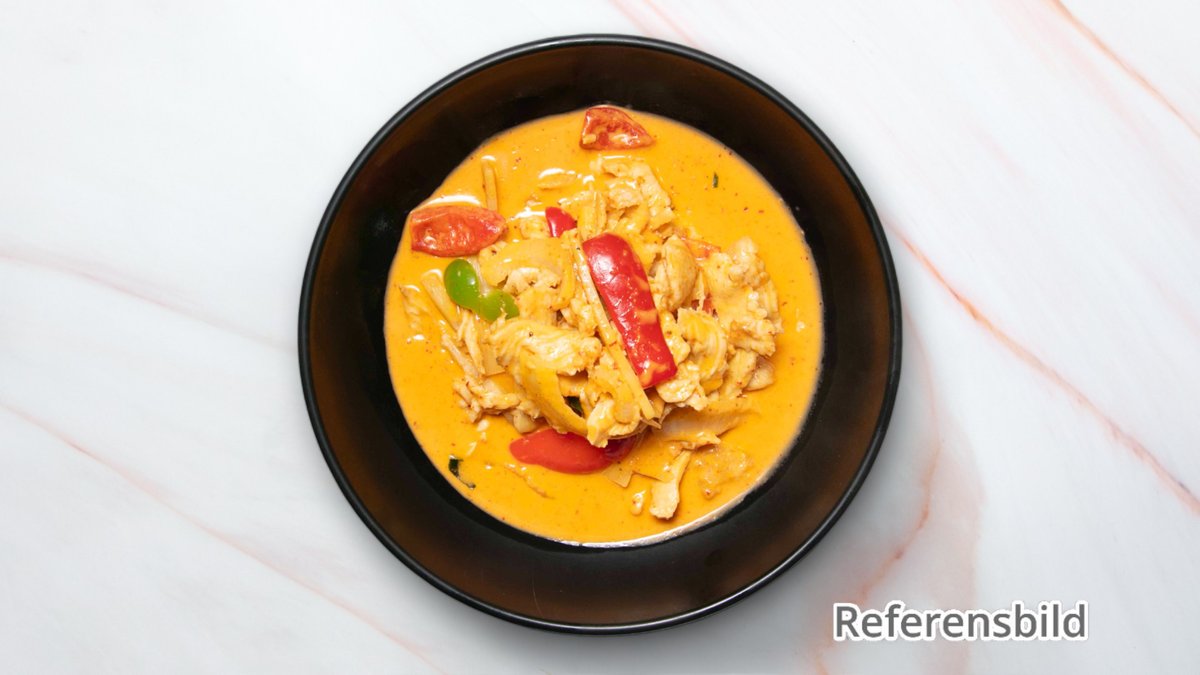 Kyckling med rödcurry och kokosmjölk.