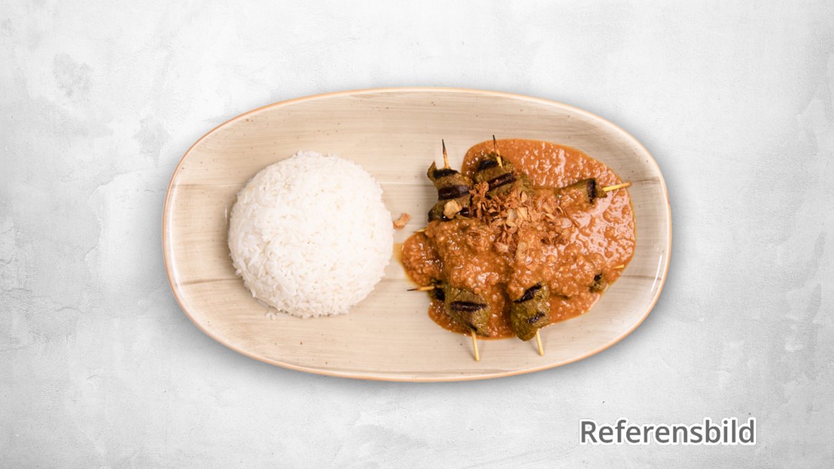 Serveras med satai sås. Stark.