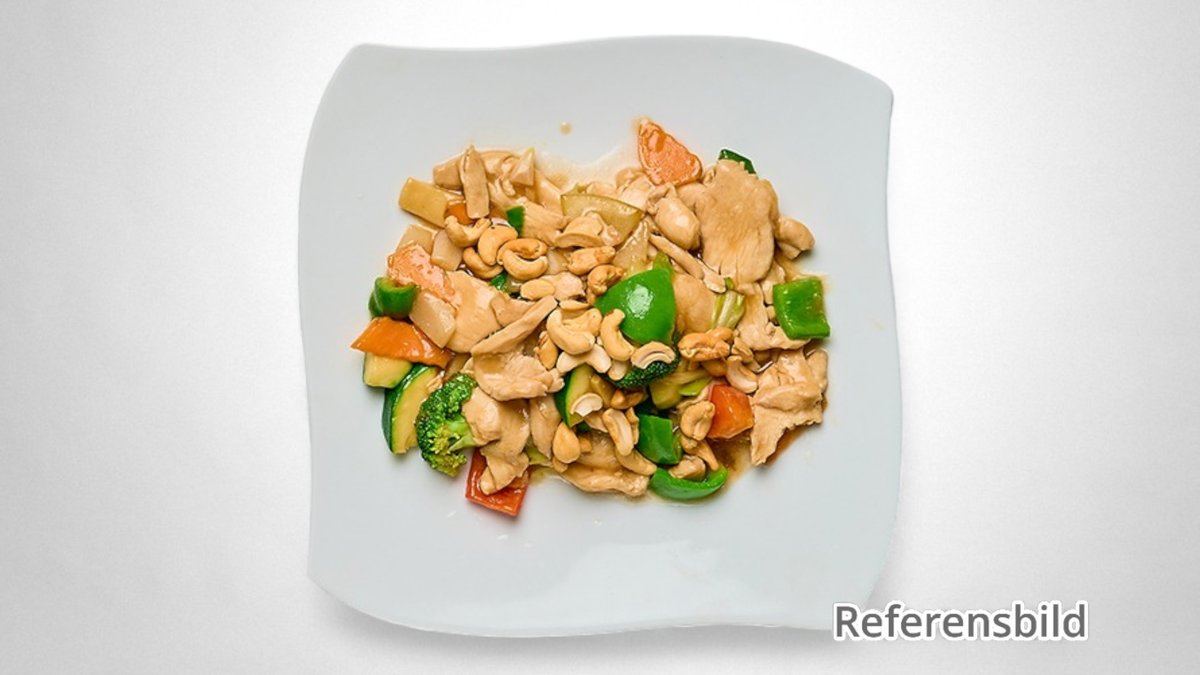 Kyckling med blandade grönsaker och cashewnötter.