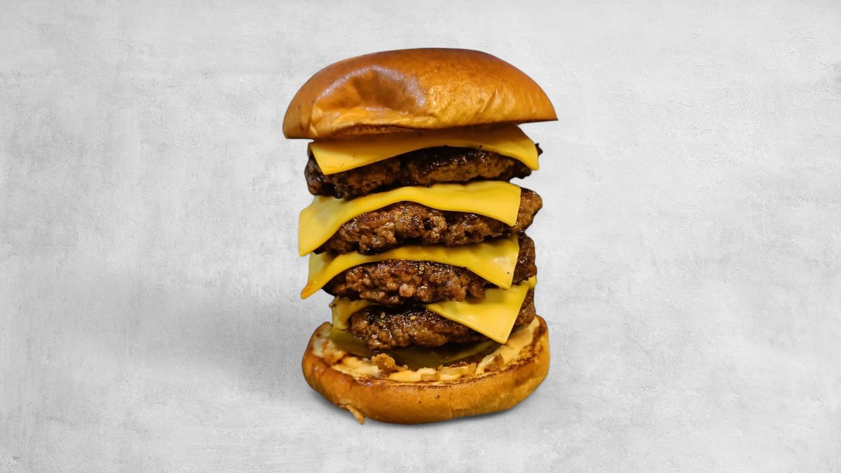 3x 100 gr pattie, trippel cheddar- & pepperjackost och majonnäs.