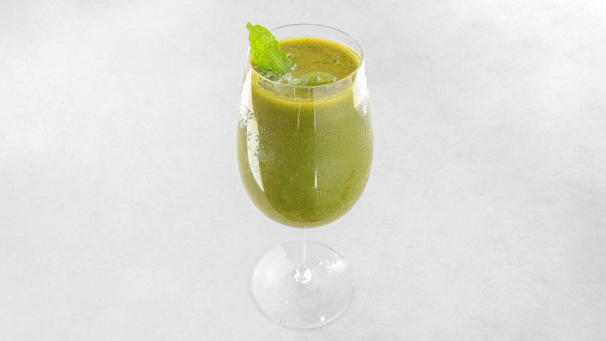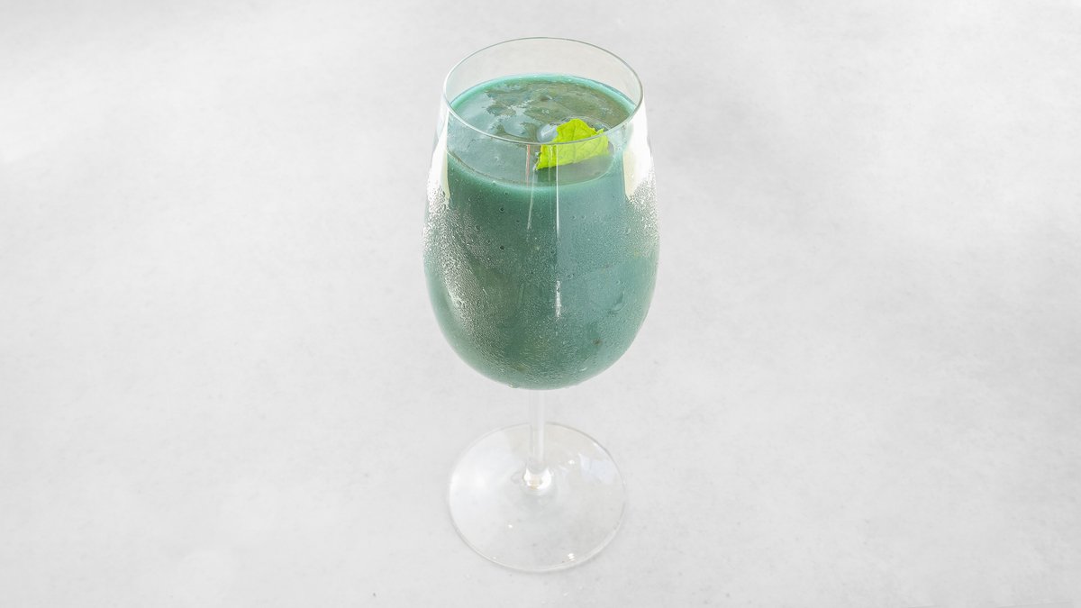 Serveras med ananas, mango, passionsfrukt, spirulina, citron och banan.