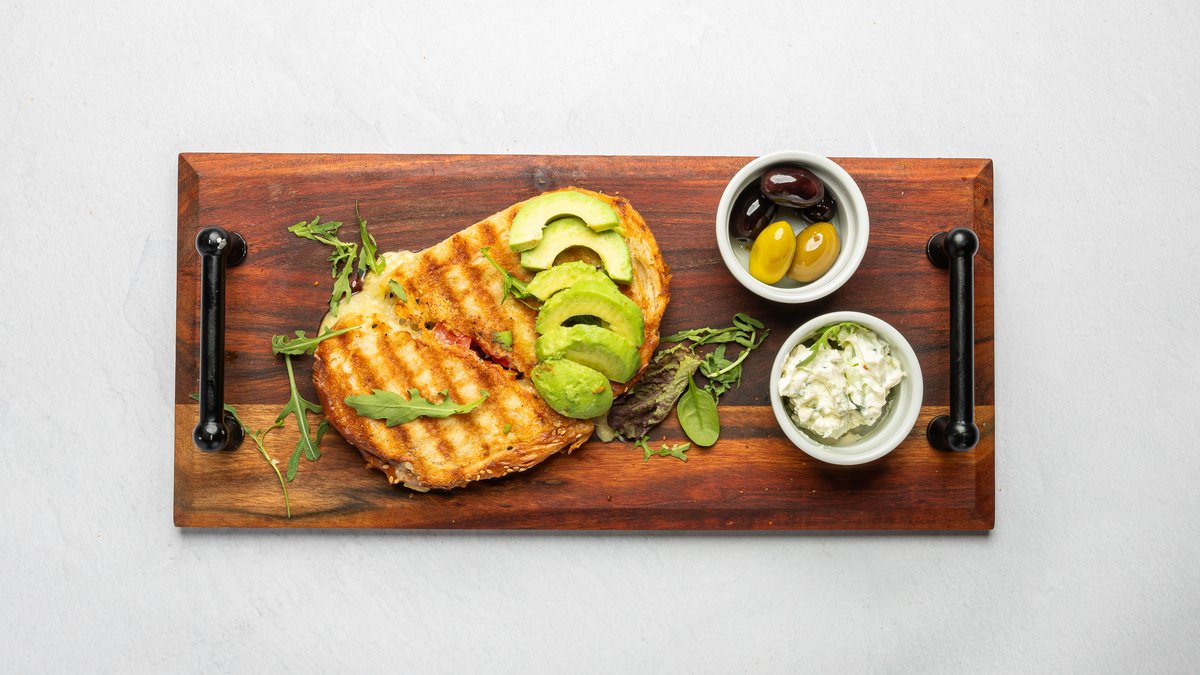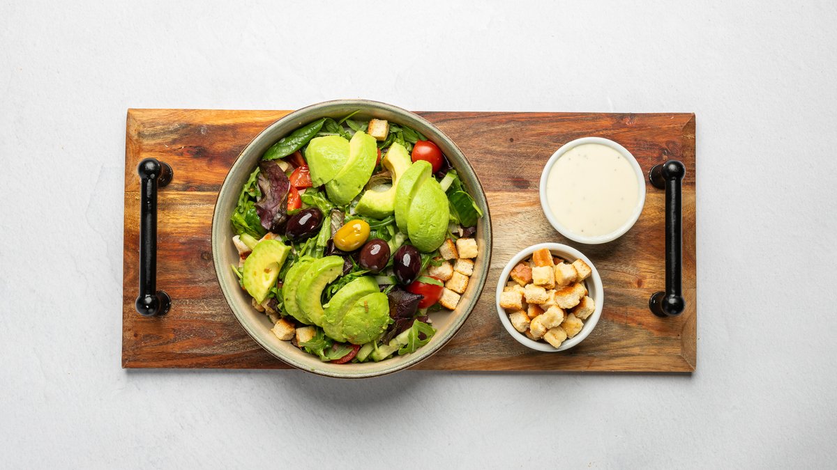Avokado, sallad, gurka, tomat, ost och ruccola.