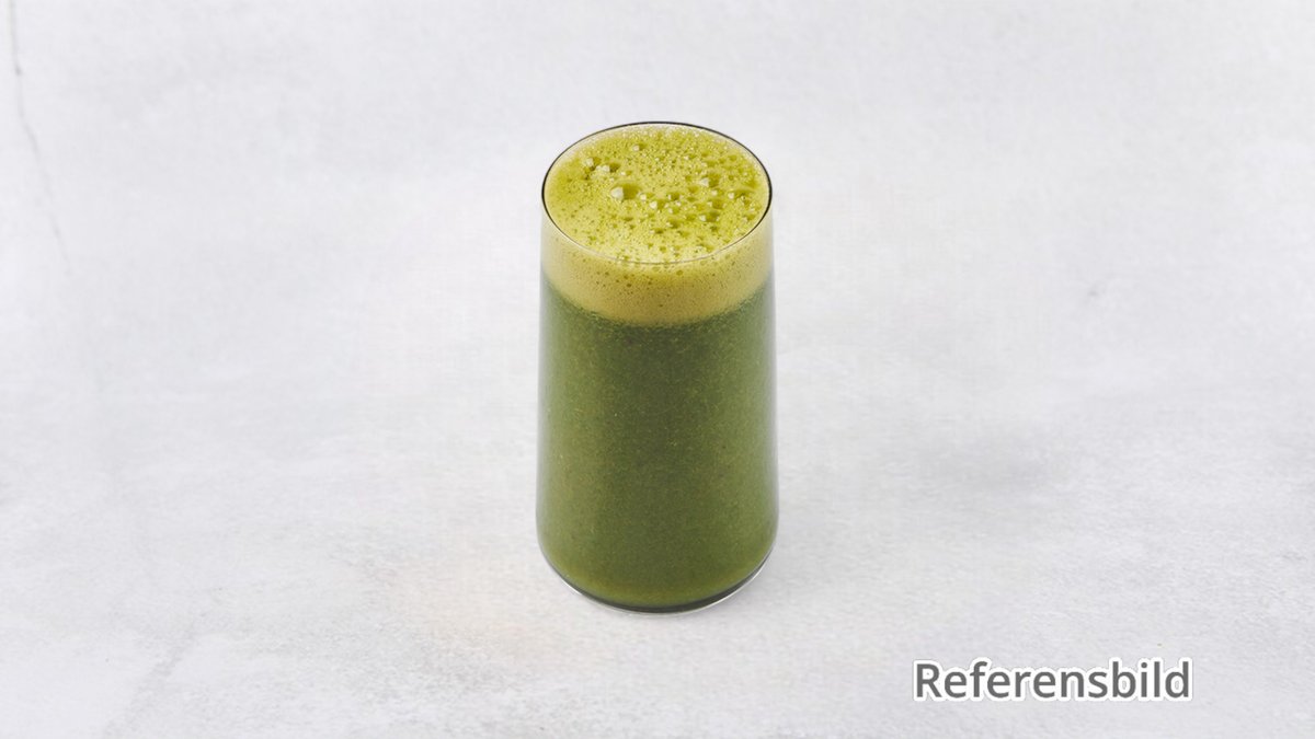 Äpple, spenat, banan, citron, mynta och äppeljuice.