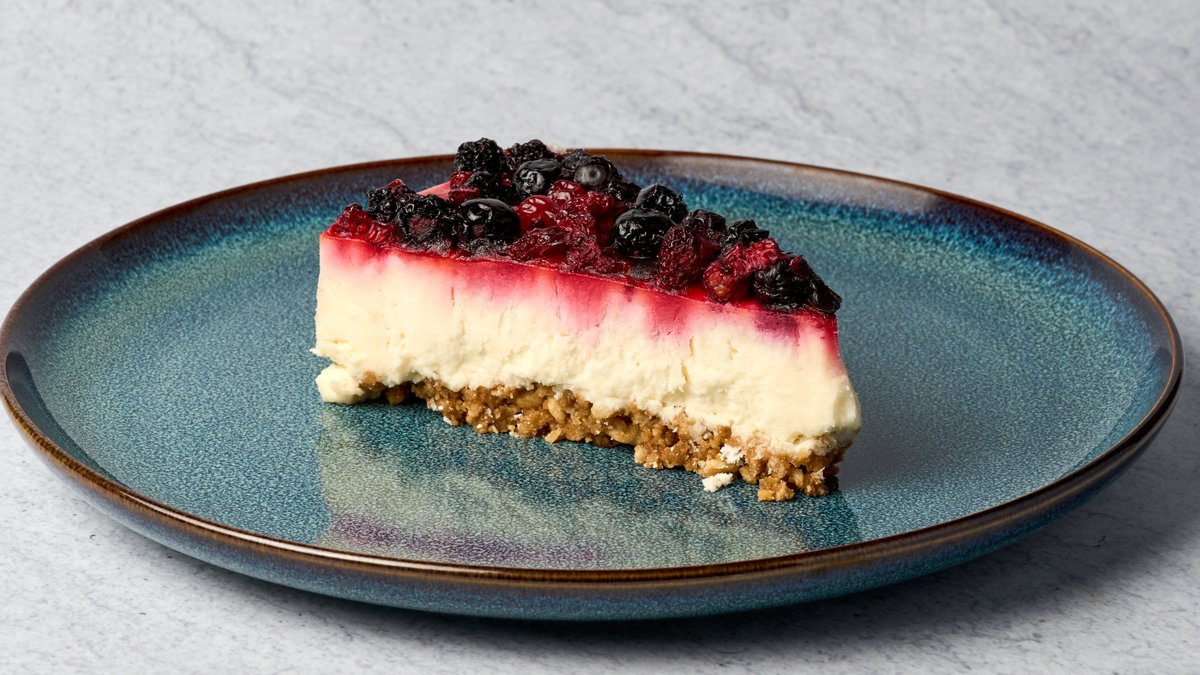 Njut av vår utsökta cheesecake, toppad med skogsbär för en söt och syrlig smakexplosion. Perfekt för efterrätt eller fikastund.