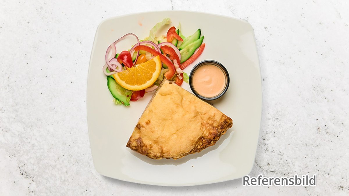 Paj med västerbottenost. Kommer kyld och behöver värmas upp för bäst smak.