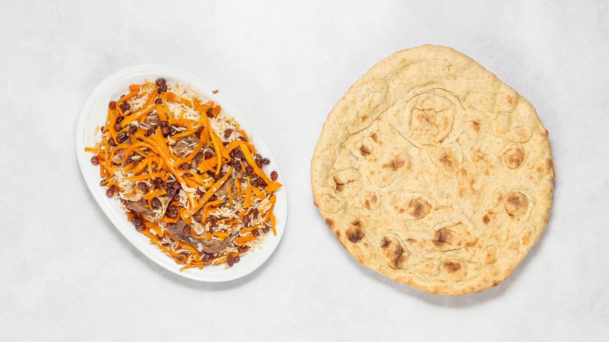 Serveras med kyckling, tomat, vitlök, lök och 1 st bröd.