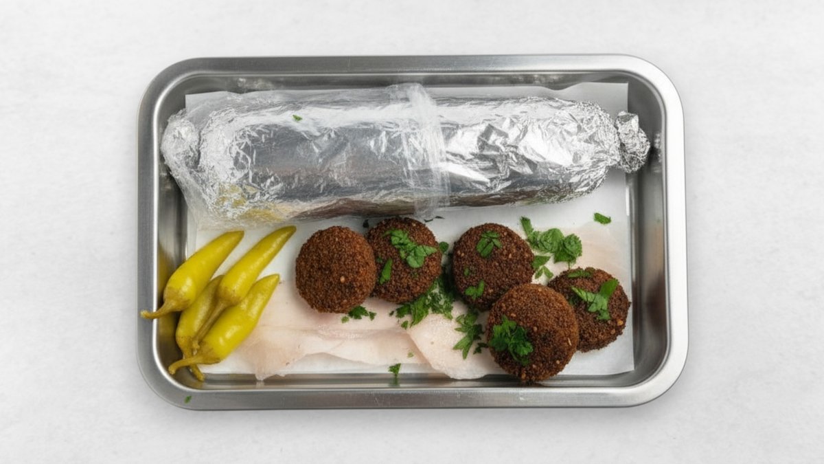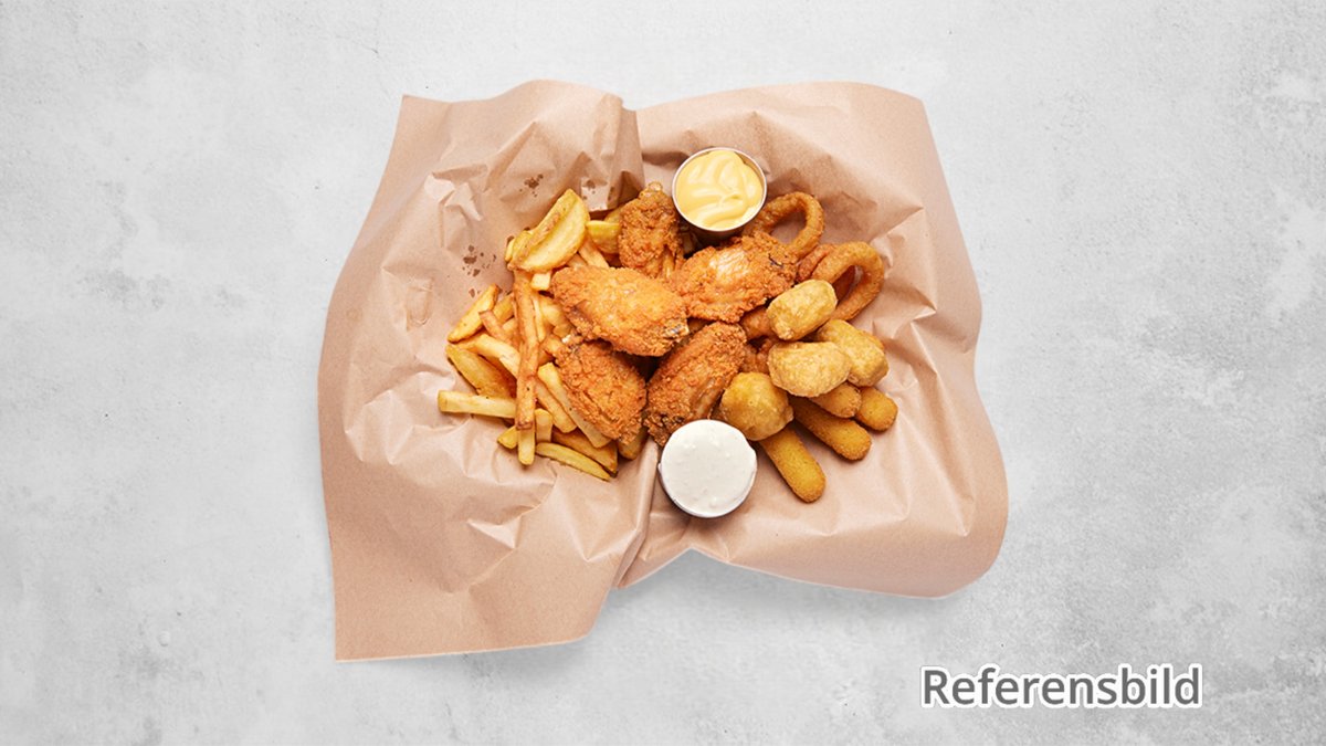 Alla rätter innehåller: Sallad, tomat, rödlök, saltgurka och persilja.