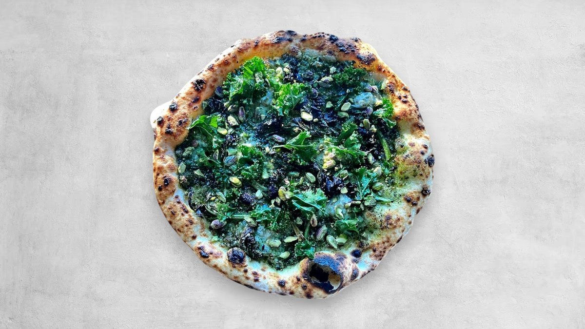 Örtpesto, Gorgonzola Dolce, olivoljerostad Cima di Rapa, citronvinägrett, olivoljekramad grönkål, krossade pistagenötter.