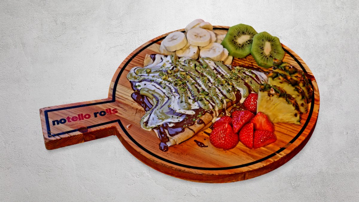 Crepe fylld med 200g krispig knafeh, pistagekräm, Nutella och choklad.