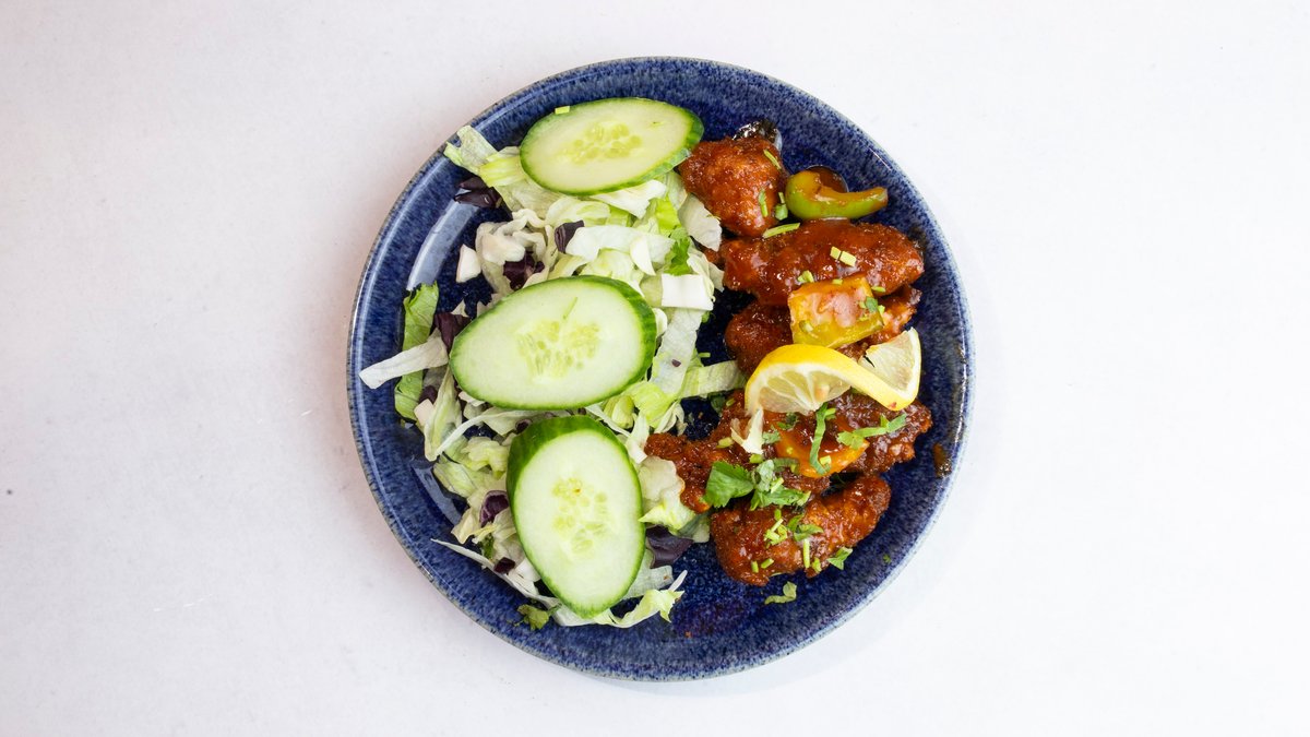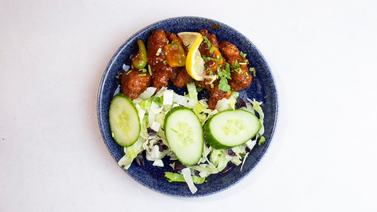 Paneer med indisk marinad, ingefära, vitlök och grön chili.