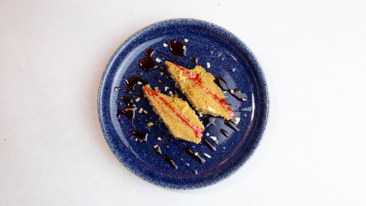 Stekt bröd i söt mjölk med mandel, pistagenötter och russin.