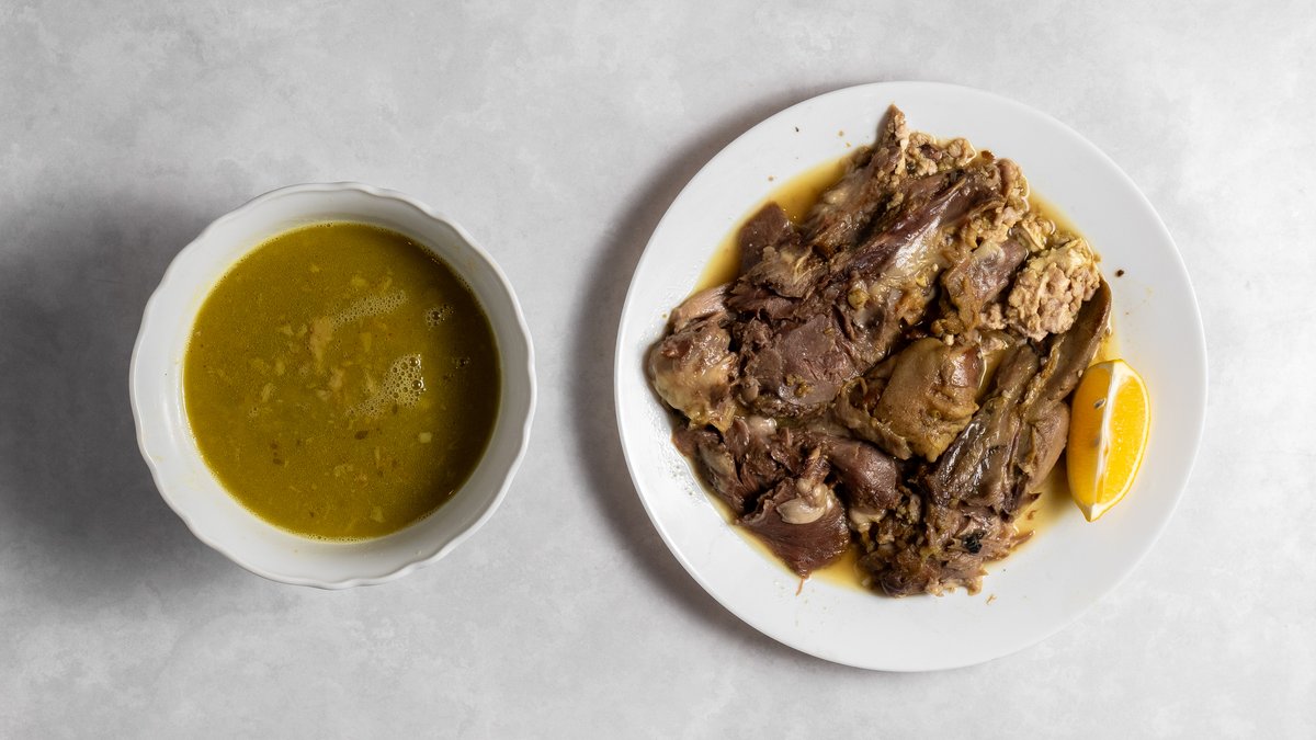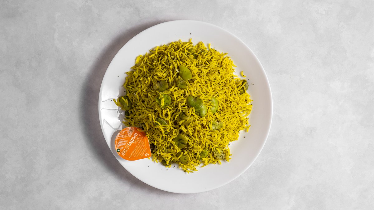 Lammgryta med kidneybönor, dill och vitlök. Serveras med basmatiris.
