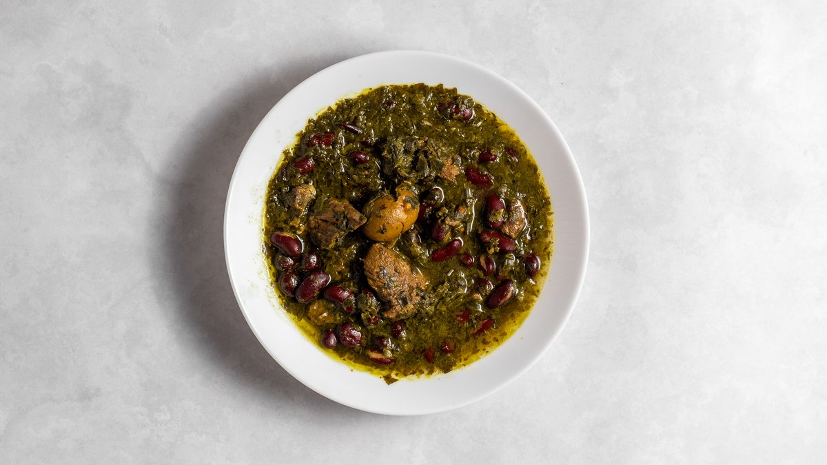 Örtgryta med röda bönor och torkad lime. Serveras med basmatiris.
