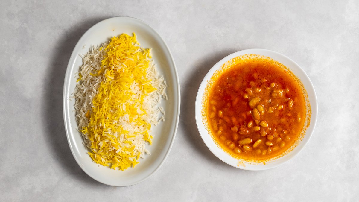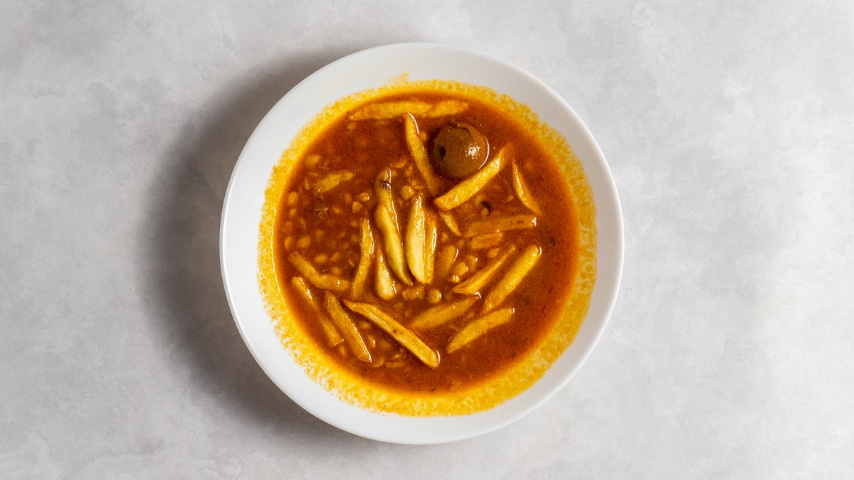 Gula linser, torkad lime, friterad potatis och basmatiris.