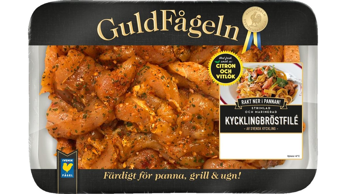 SEK 79.90SEK 99.90Guldfågeln Kycklingbröstfilé Strimlad Citron & Vitlök, 600 g
