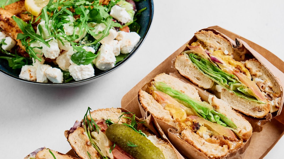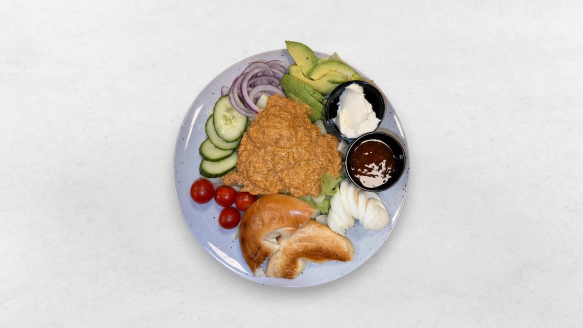 Bröd, färskost och dressing ingår.
