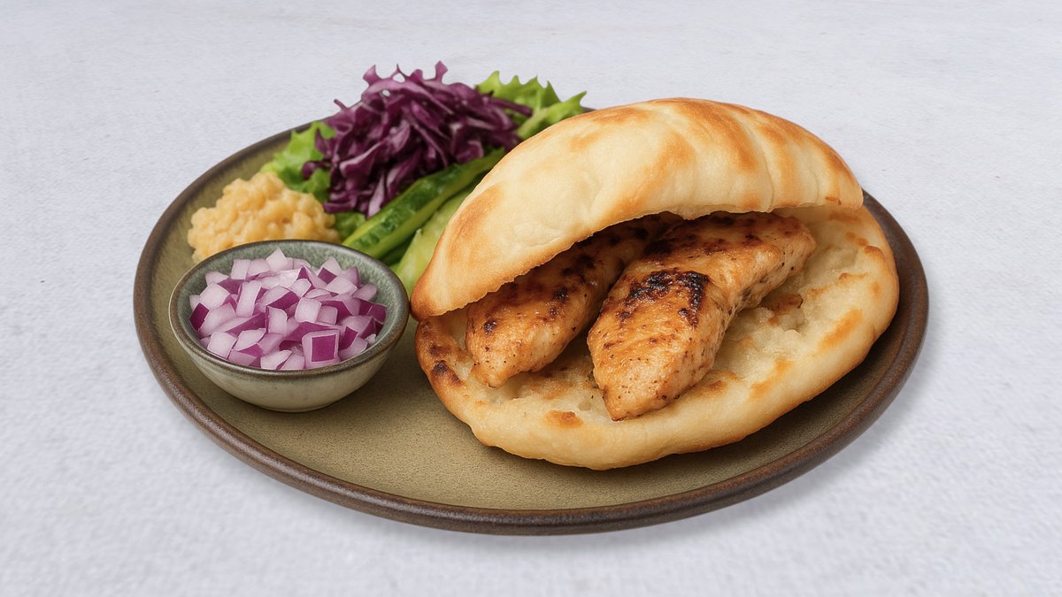 Saftiga bitar av kyckling, marinerade i en hemlagad kryddblandning. Serveras med pommes, grönsaker, ajvar och kajmak.