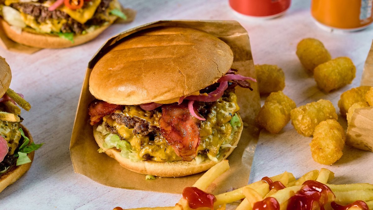 90 g sojaburgare, ketchup, burgerdressing, tomat, inlagd gurka och sallad.