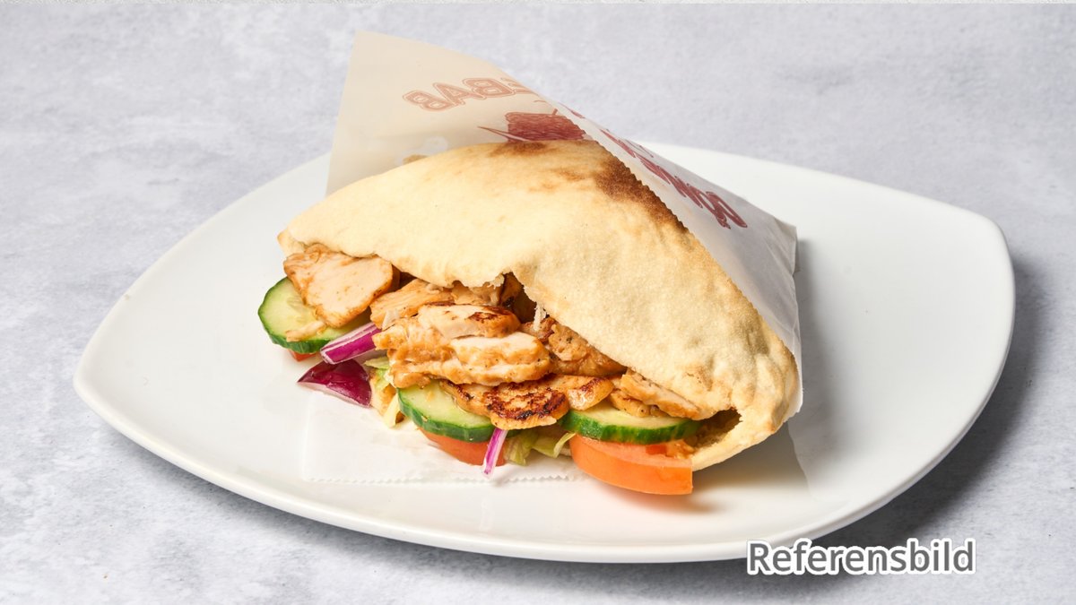 Kyckling, mild kebabsås, lök, tomat, isbergssallad, feferoni.