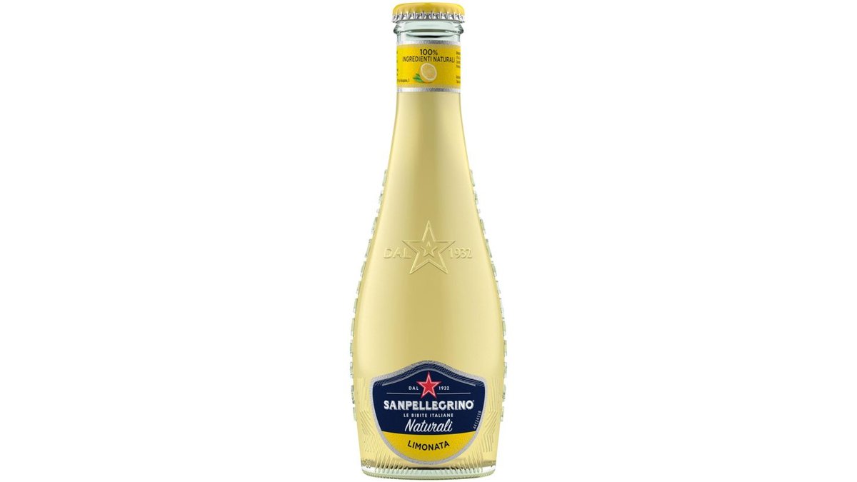 San Pellegrino Limonata, kolsyrad dryck med 16 % juice av noga utvalda solmogna citroner från södra Italien. Smaken är friskt syrlig med en balanserad sötma.