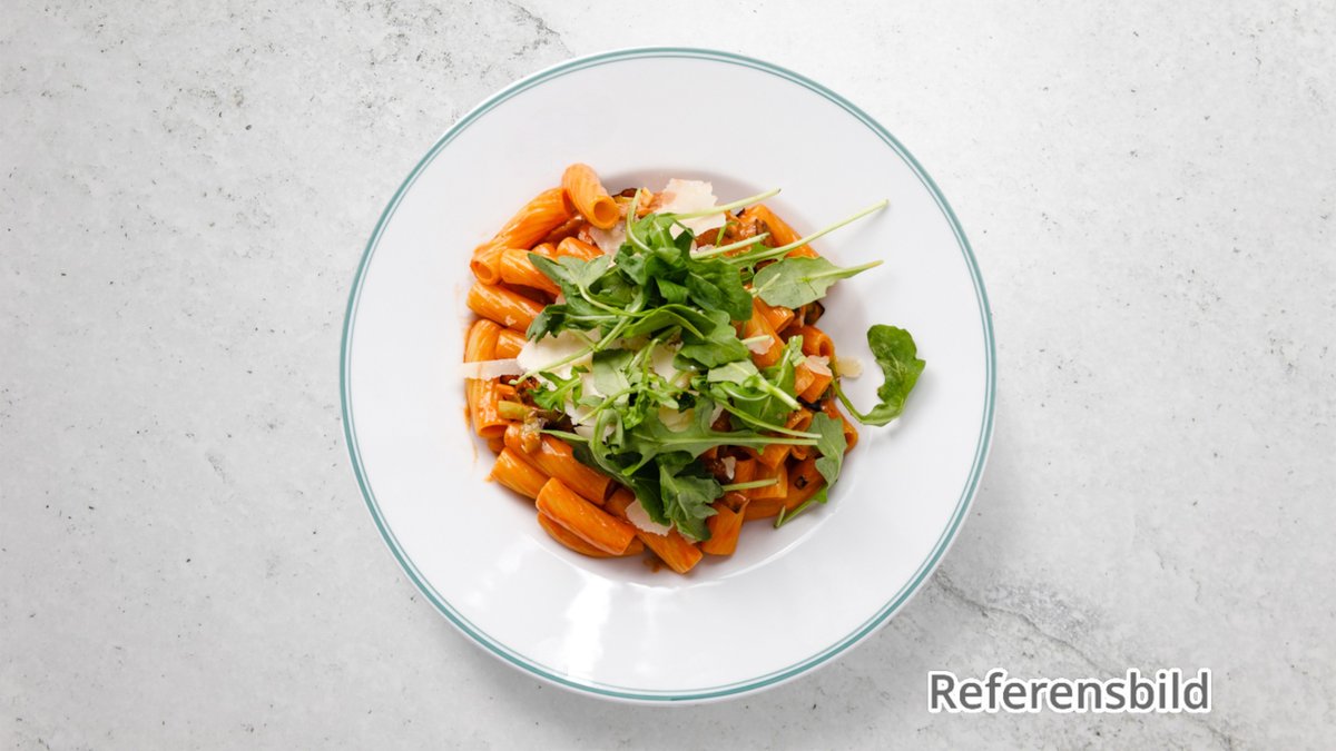 Pasta med champinjoner, paprika, aubergine, zucchini, krämig sås och parmigiano.