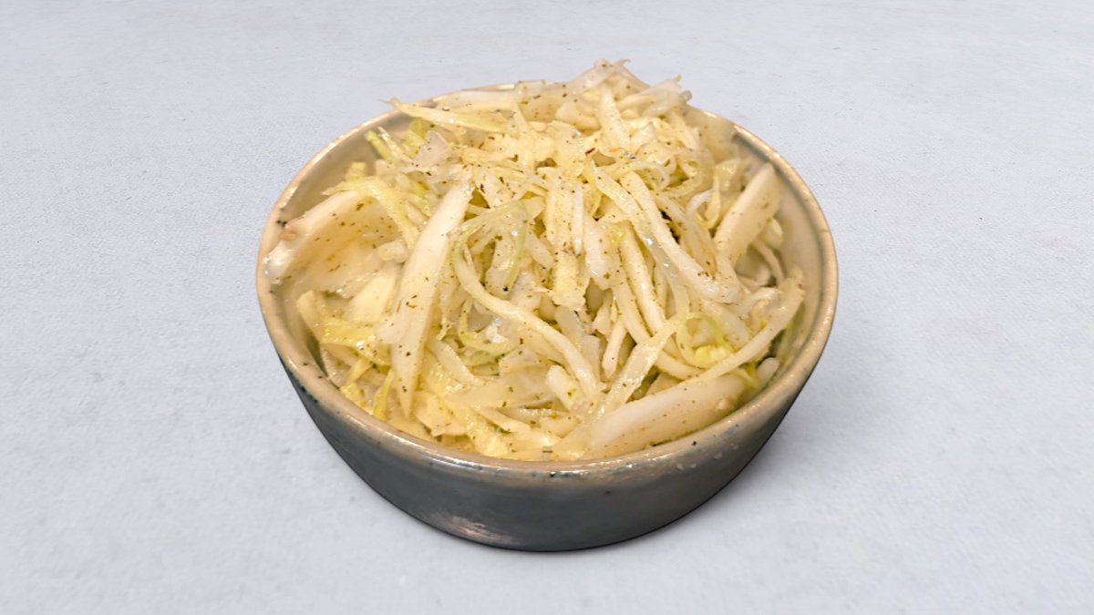 Sallad med lök, pepperoni, isbergssallad, tomat, gurka, nybakat bröd och valfri sås.