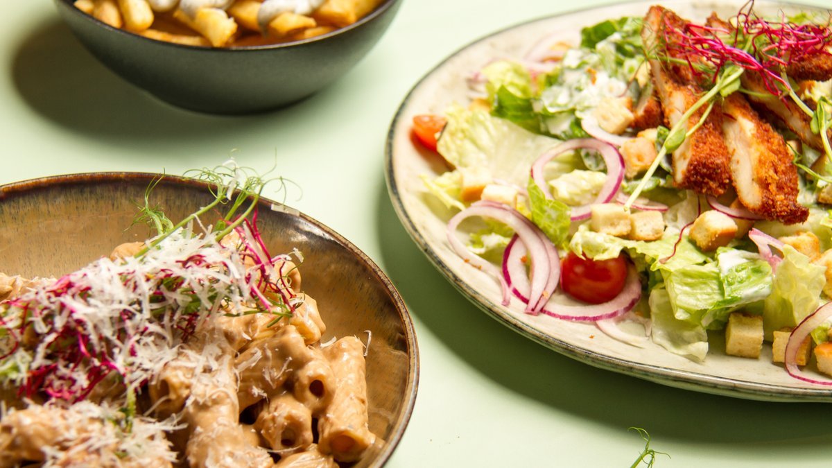 Upptäck Njuta Lounge & Burgers prisvärda hamburgare, krispiga sallader & fluffiga pinsa!