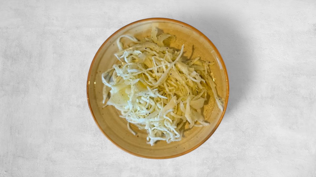 Sallad, gurka, tomat, skinka, ost, majs, purjolök och ananas.