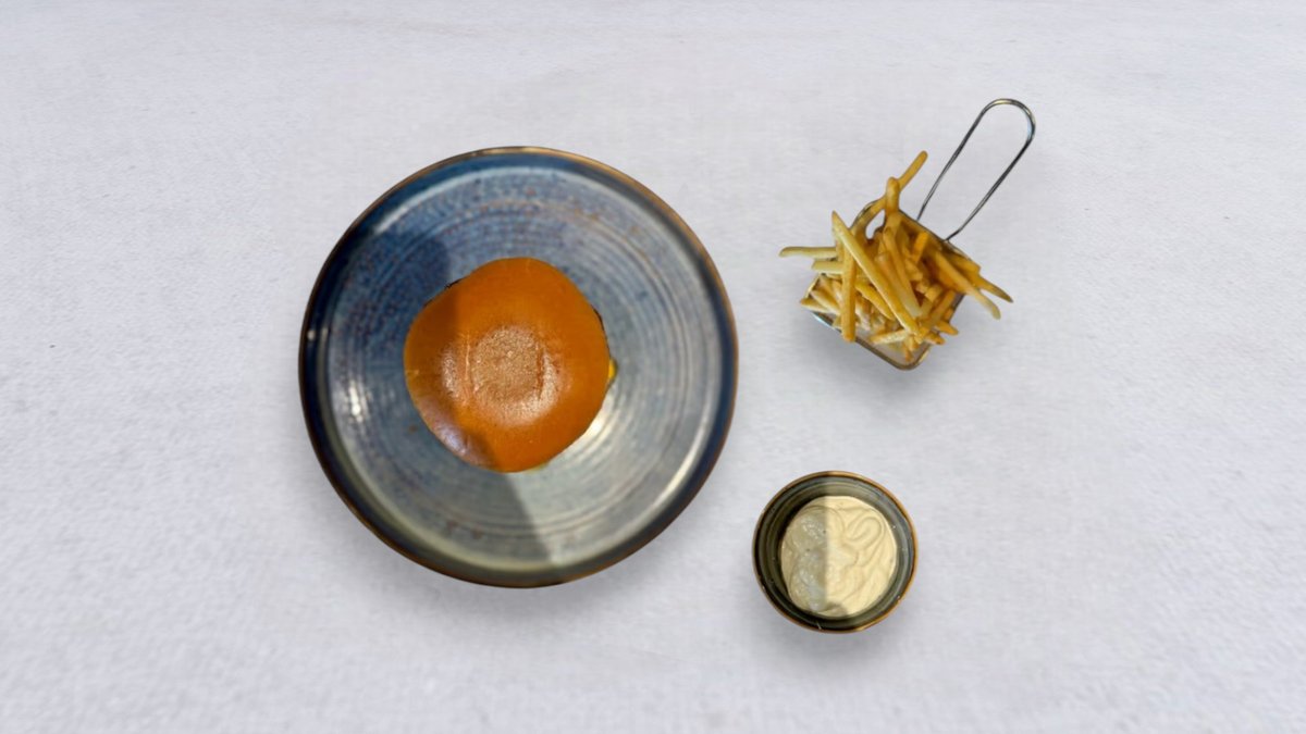 Serveras med tomat, saltgurka, cheddarost, dressing, bearnaisesås och pommes frites.