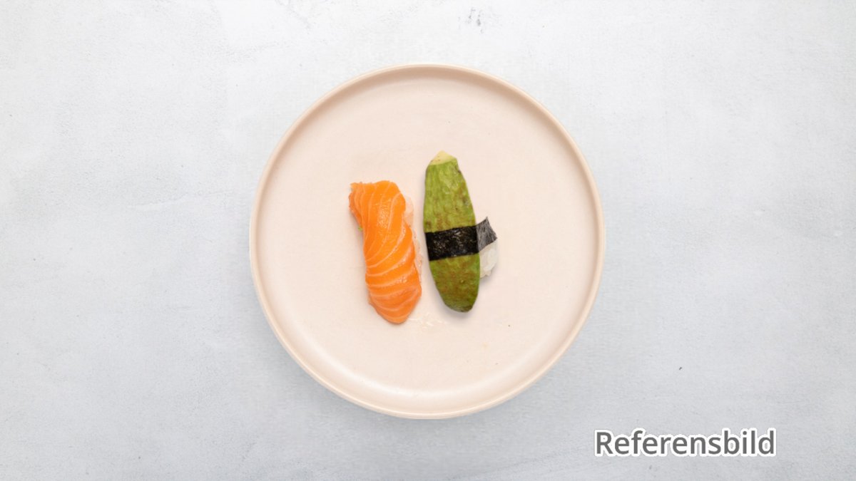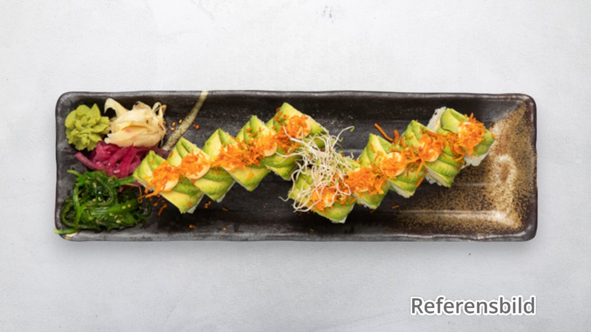Avokadonigiri, tofunigiri,sockerärta och vegetarisk inside out roll. Välj antal bitar i nästa steg.