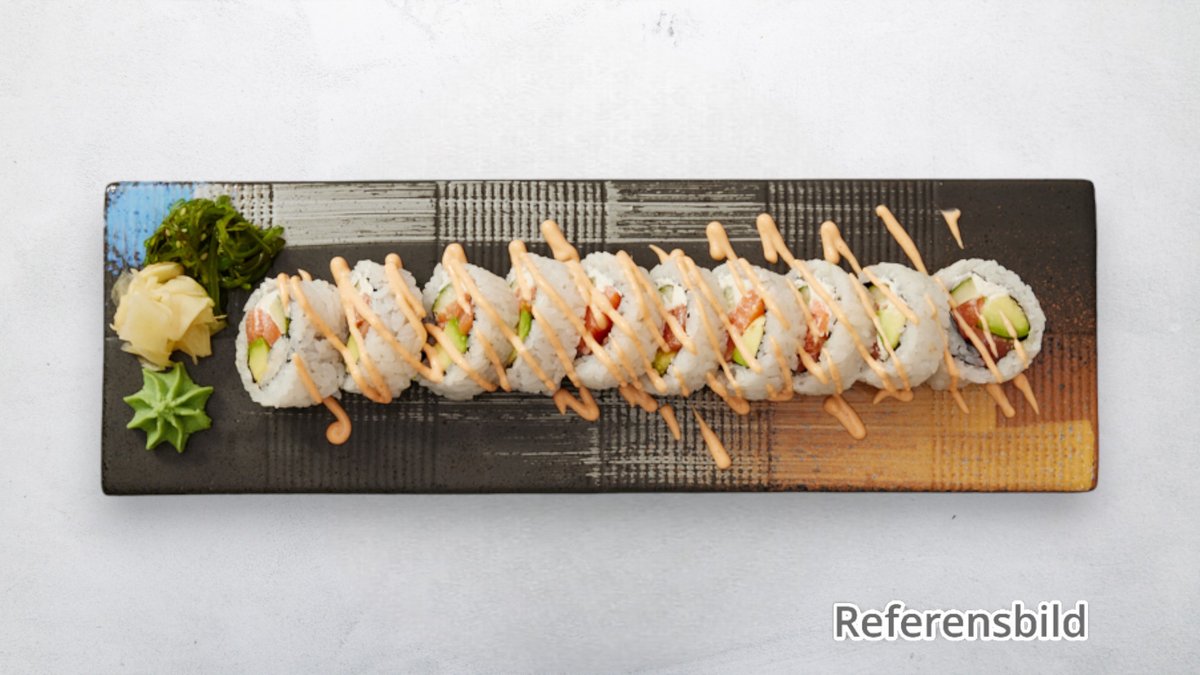 surimi, avokado, gurka, unagi sås, chilimajo och sesam.