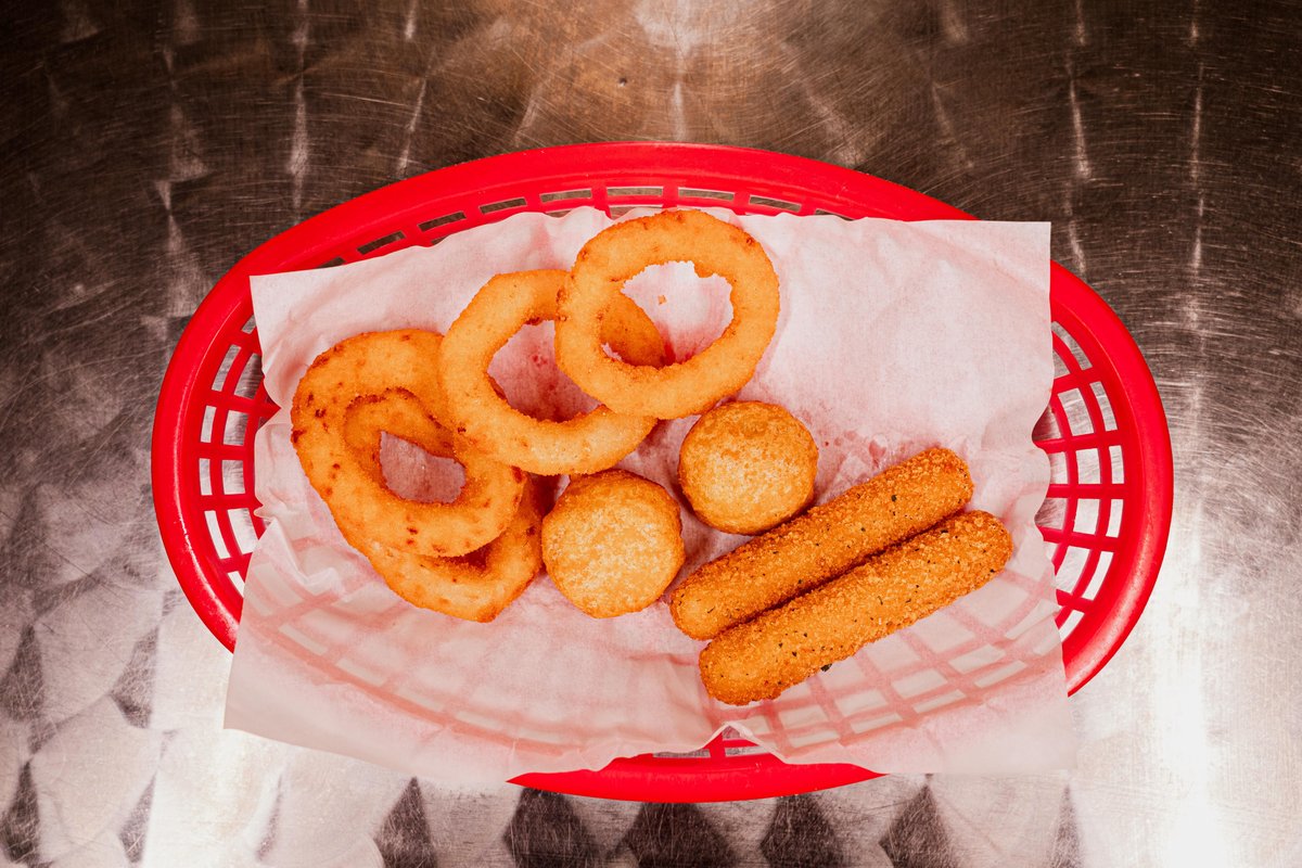 4 lökringar, 2 chilicheese och 2 mozzarella sticks.