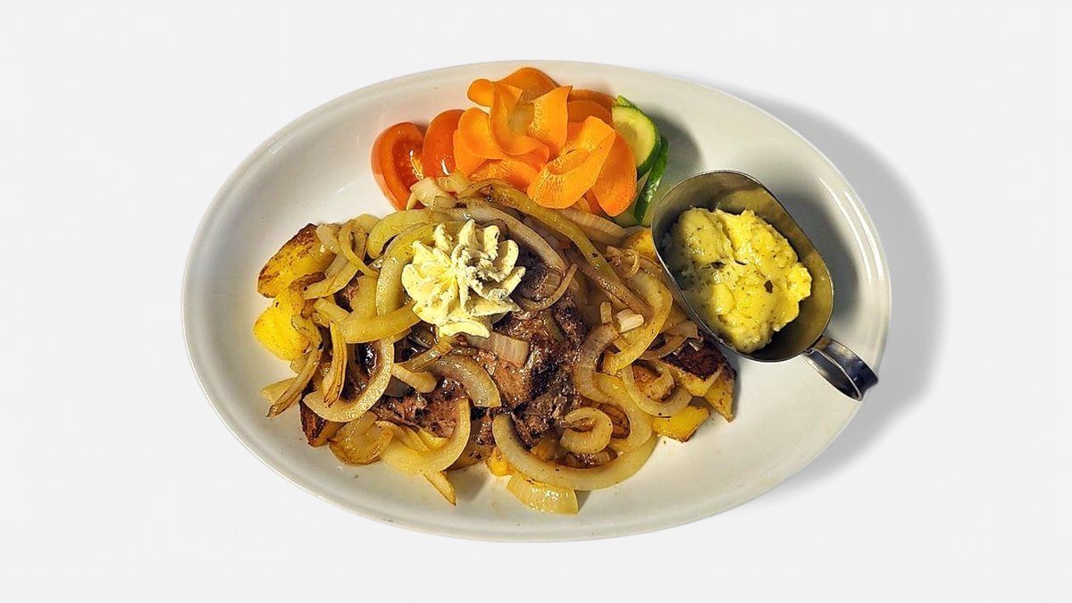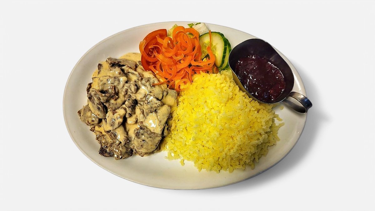 Tillagad med fläsk, lök och kryddpeppar. Serveras med Smör och Lingonsylt.