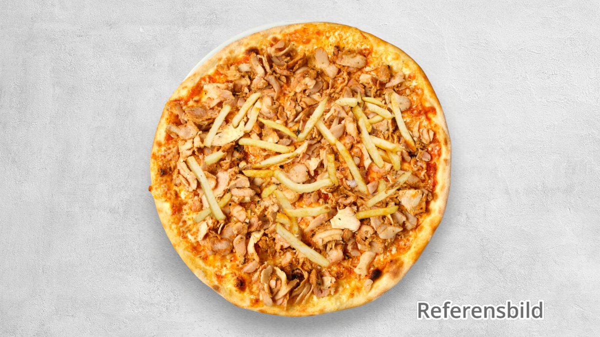 Tomatsås, ost, kebab, jalapeño, lök, chilisås och orientdressing.