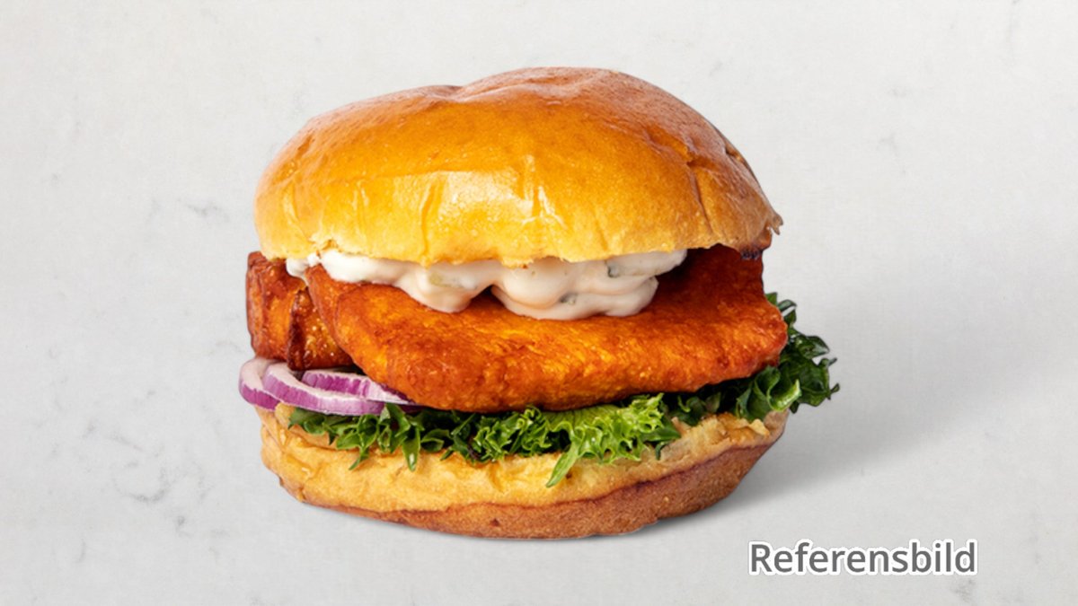 Kycklingfilé, sallad, dressing, lök, ost, pommes och valfri dryck.