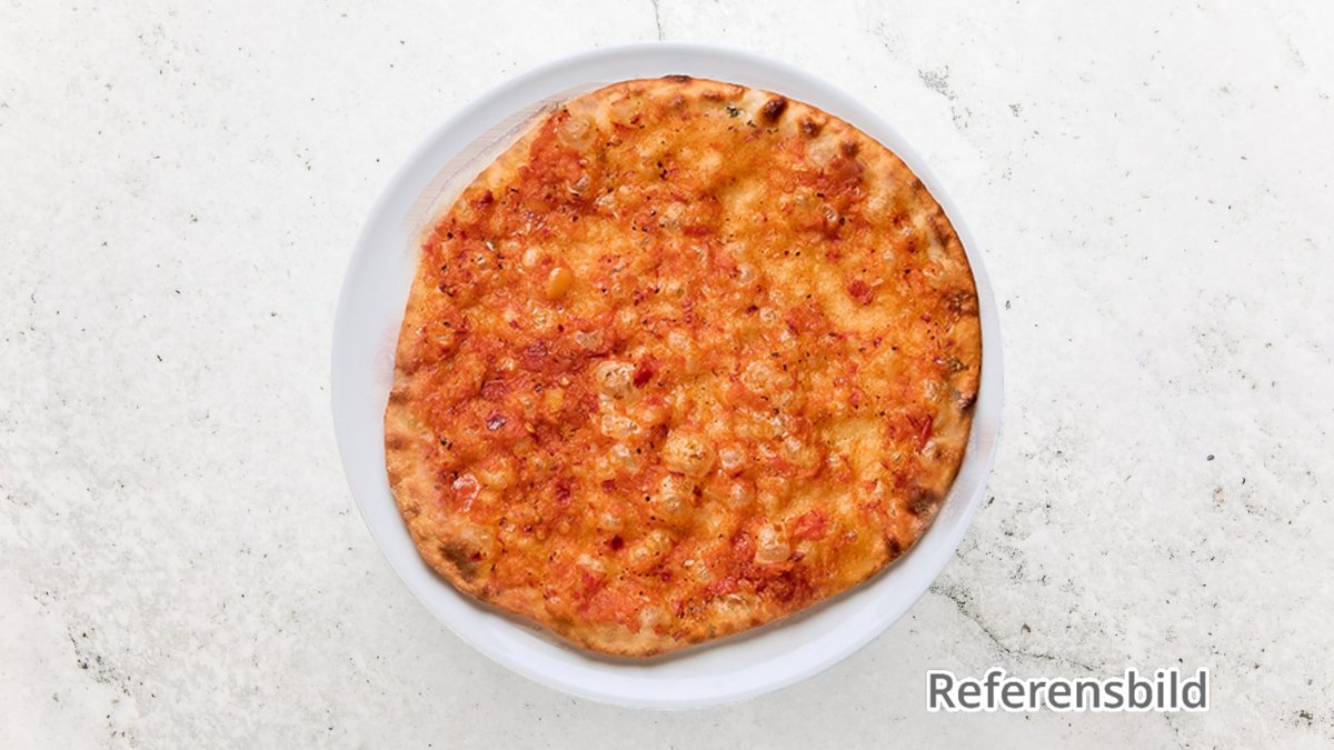 Tomatsås, ost, pepperoni, lök, soltorkade tomater och paprika.