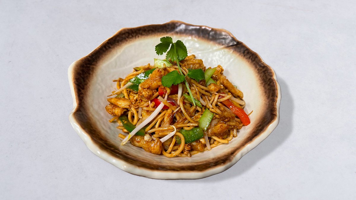 Plum sauce, pad thai sauce, bell peppers, onions, bean sprouts, broccoli and white cabbage.